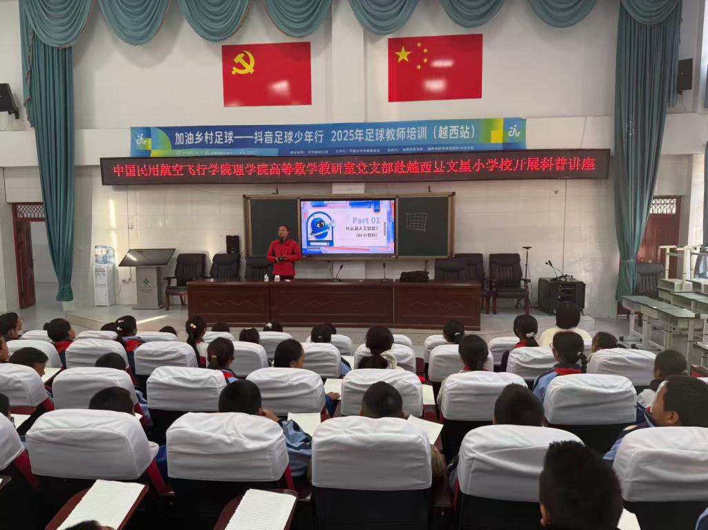 本网讯 张强 报道:2025年11月6日,中国民用航空飞行学院理学院高等数学教研室党支部书记、高校“双带头人”党支部书记强国行专项行动团队负责人张强教授,走进越西县文星小学,为五年级学生带来一场趣味盎然的科普讲座。讲座以“有趣的马鞍面”和“神奇的人工智能”为核心,用贴近生活的案例和生动易懂的语言,让孩子们在欢声笑语中感受科学的魅力。