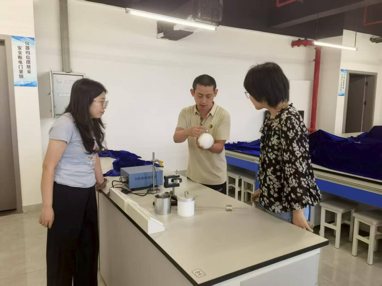 教学研讨环节移至5016基础物理实验室。孙培育以“刚体转动”实验为题进行示范教学,从器材摆放到数据采集逐一讲解。圆桌讨论中,教师们围绕“刚体实验易错点”集思广益,形成多条改进建议,纳入新学期实验教学中。
